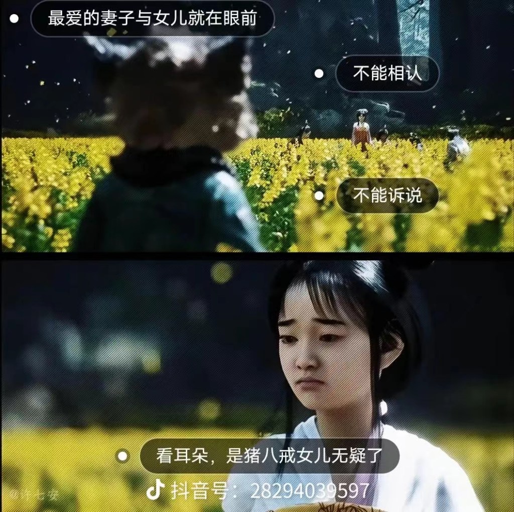 I can’t love you if I don’t look back, and I’ll hurt you if I look back, so Bajie can’t recognize the Violet Spider and doesn’t dare to recognize her and their daughter.